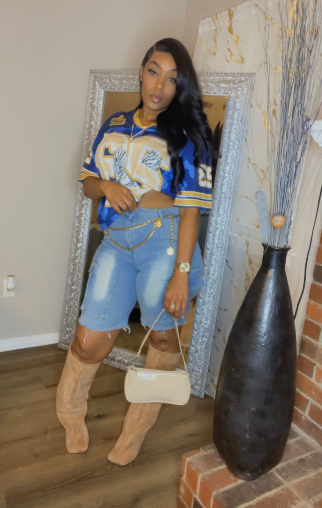 The unisex jersey of Blitz Top is designed to enhance every outfit, offering versatile styling options for any occasion. It is available in an oversized fit and can be worn dressed up or down. Our model is wearing a size small for reference.